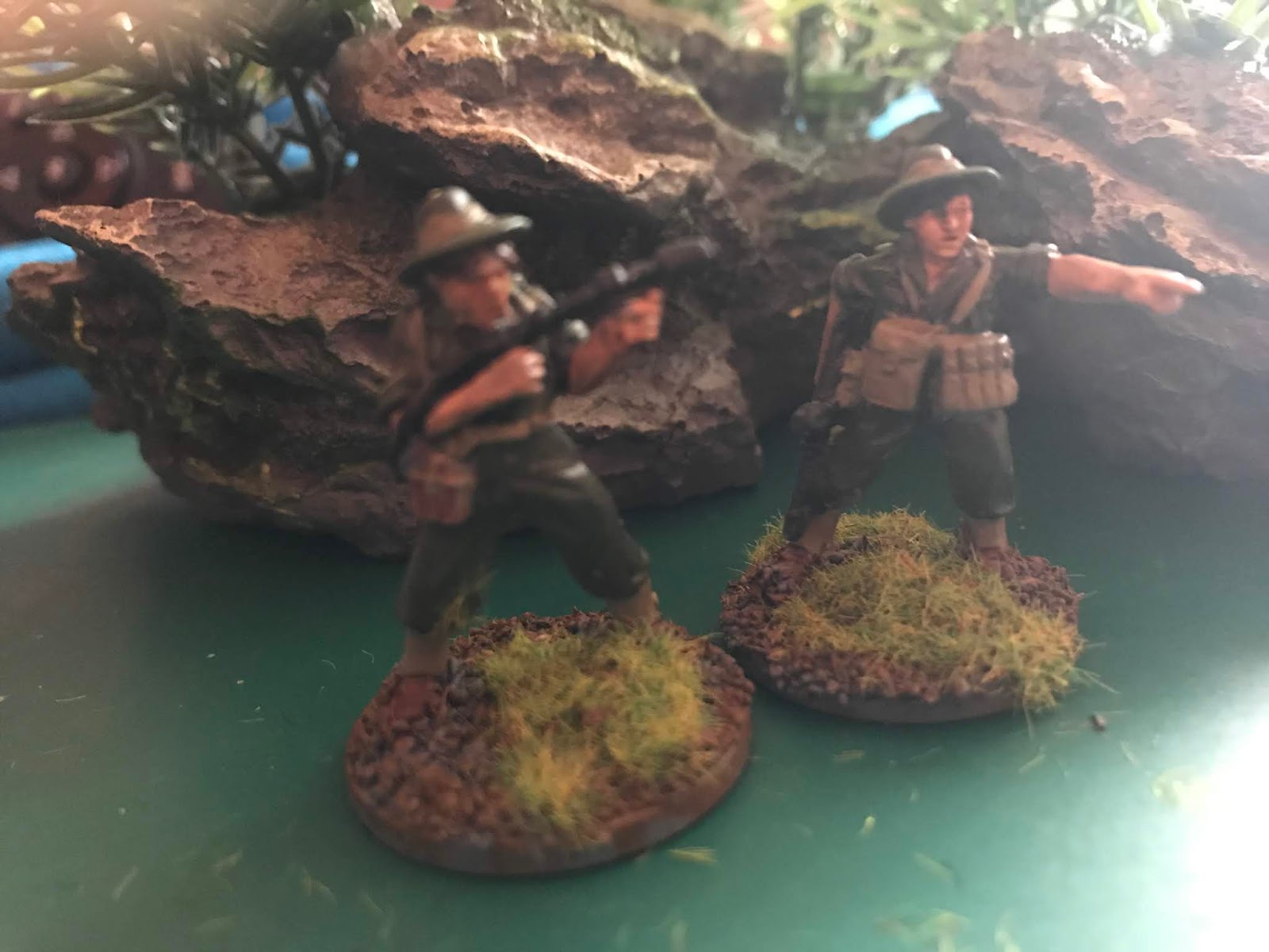 Finished my Aussies for Bolt Action New Guinea campaign mainly Warlord Games with a few Artizan and Brigade Games bits .
